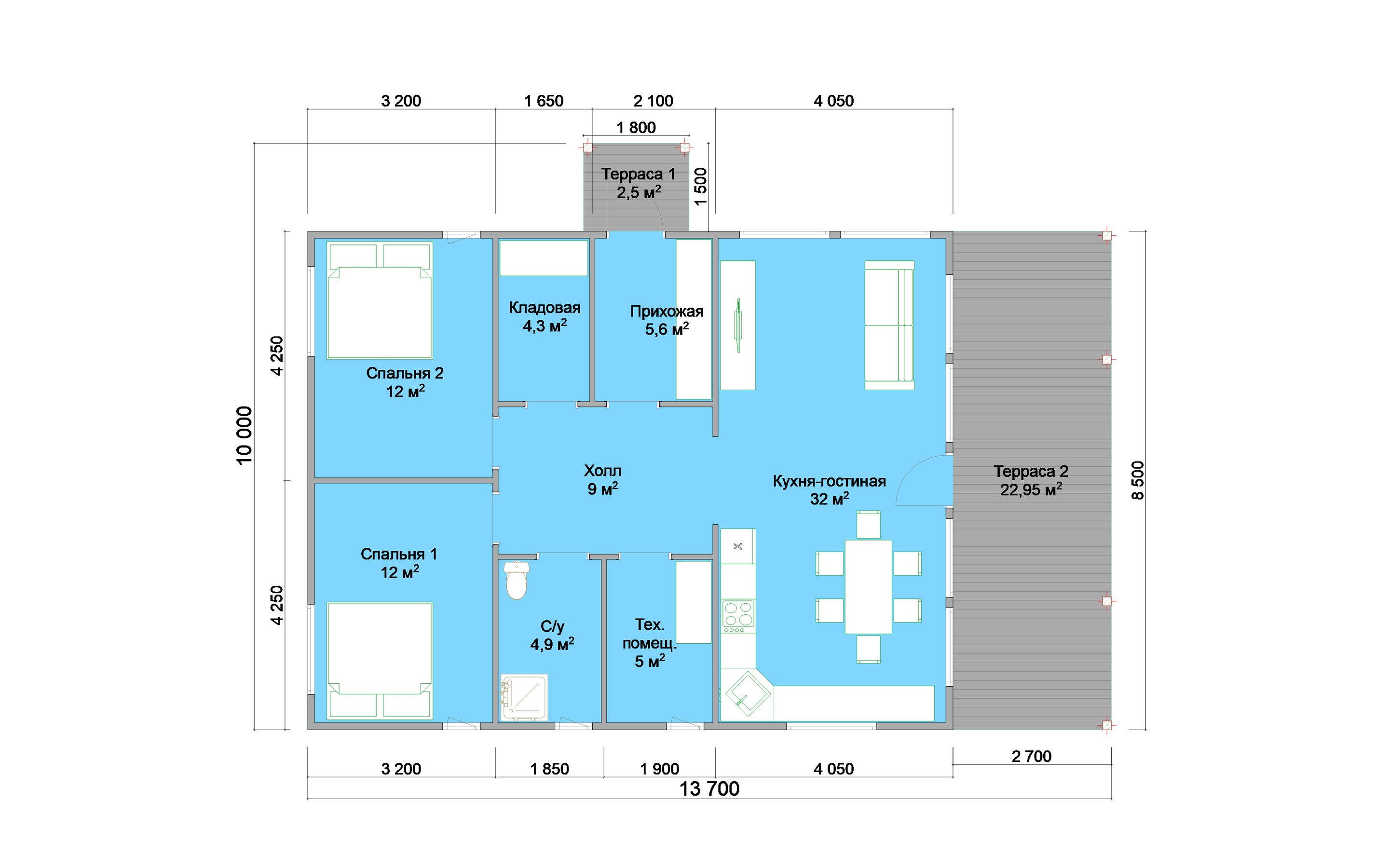 Общая площадь: 86 м²