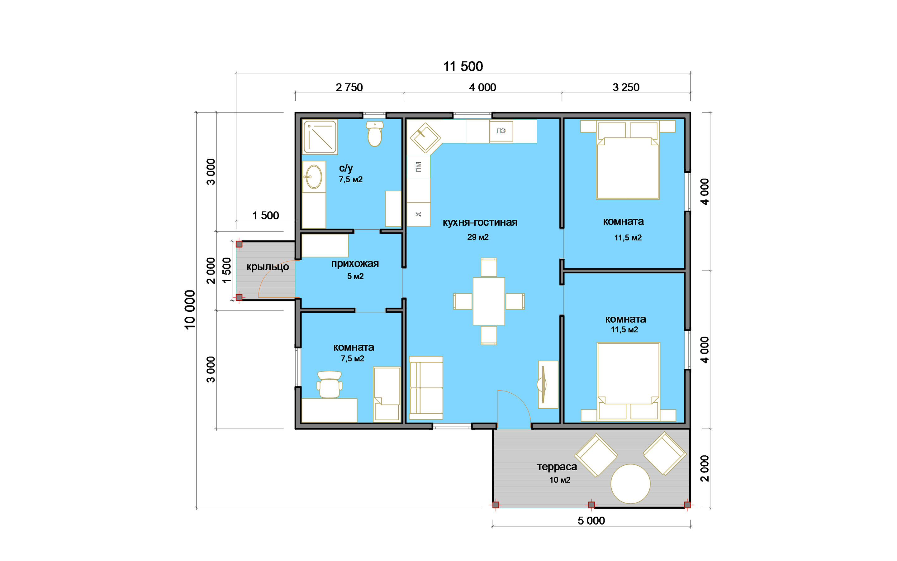 Размер: 11,5 х 10 м
