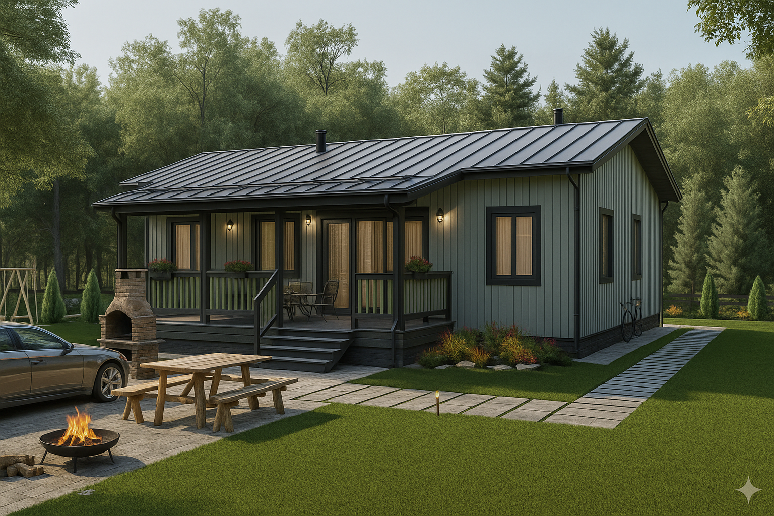 | Надёжная крыша | Металлочерепица Grandline Classic, толщина 0,45 мм, покрытие PE, комплект с доборными элементами и защитой от насекомых. Подкровельная мембрана + контробрешетка 40х50 мм + обрешетка 25х100 мм. |